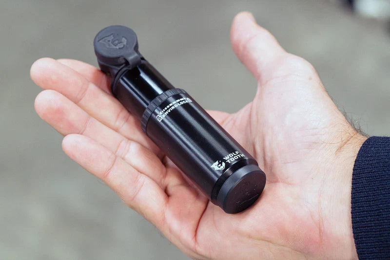 The EnCase Pump expands the EnCase System product line of multi-tools with unique features and clever storage solutions. Three sizes of pump are available: 30, 40 and 85cc. The 30cc pump has room inside to fit the new Wolf Tooth EnCase Tire Plug.