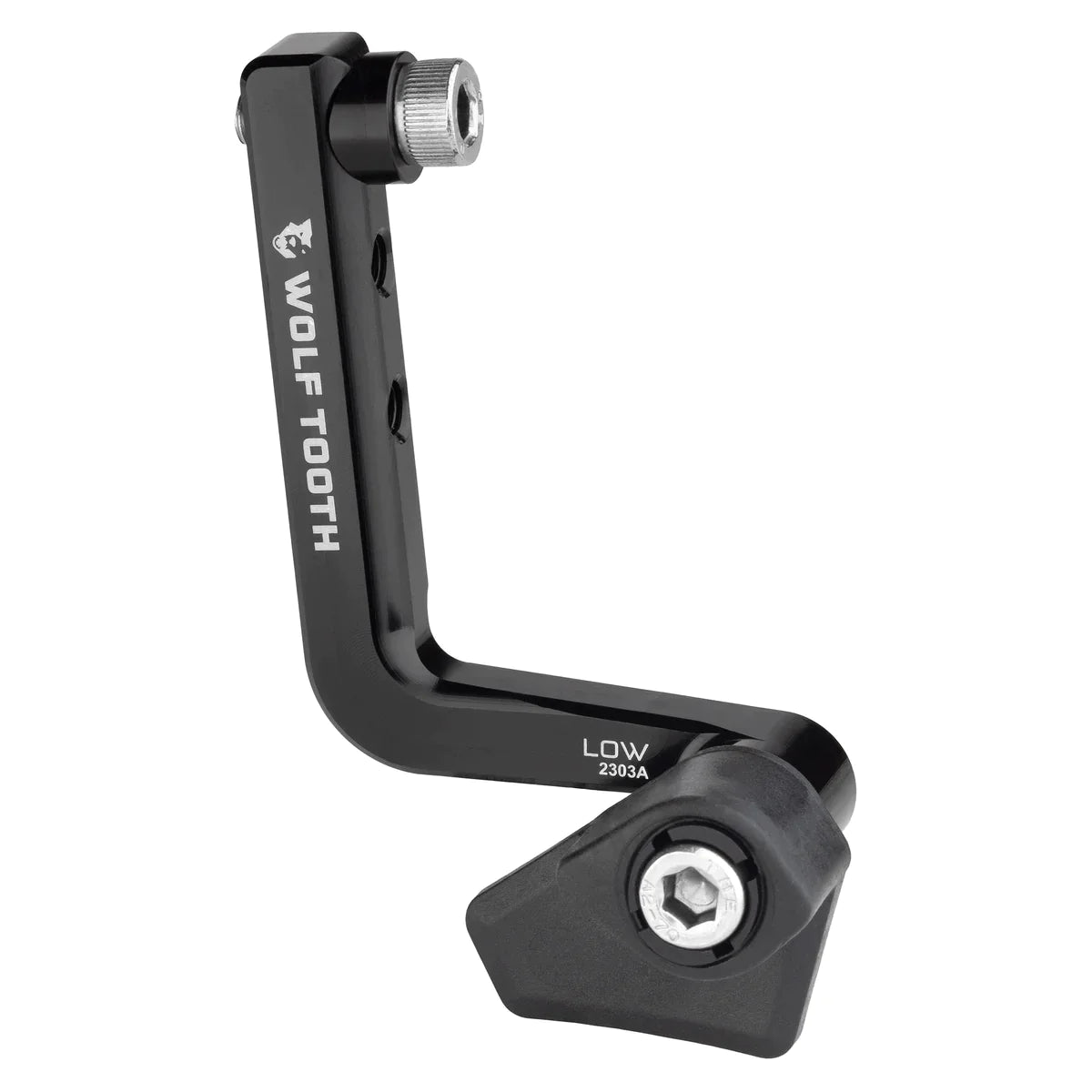 The head of the LoneWolf Aero Chainguide must be within 2mm of the chain to be effective at preventing dropped chains. Three base sweep options cover the vast differences in chainring diameter from 38-62T. Low sweep is for roughly 38-52T chainrings, mid sweep is for 52-58T, and high sweep is for 54-62T. Our unique GuideLock quick adjustment system provides 8mm of positioning for chainline.